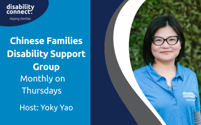 We welcome all families with special needs to join the relevant support group. It is a great opportunity for parents to share their experience and network with each other. Please contact Yoky Yao, or reception at Disability Connect for more information or bookings, phone 09 6